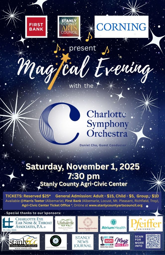 A Magical Evening with the Charlotte Symphony Orchestra will fill the air with the MAGIC of live orchestral music,